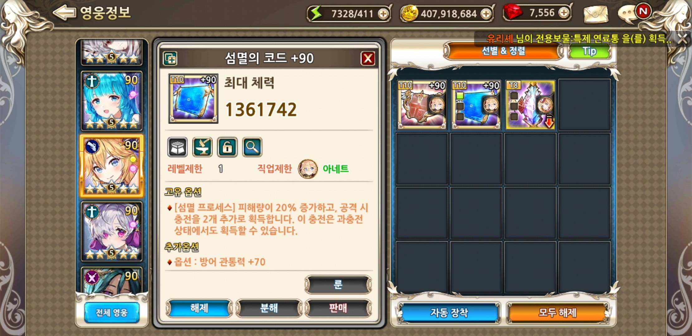 참고로 아네트는 기계공 서포터인데 약간의 힐러역할,