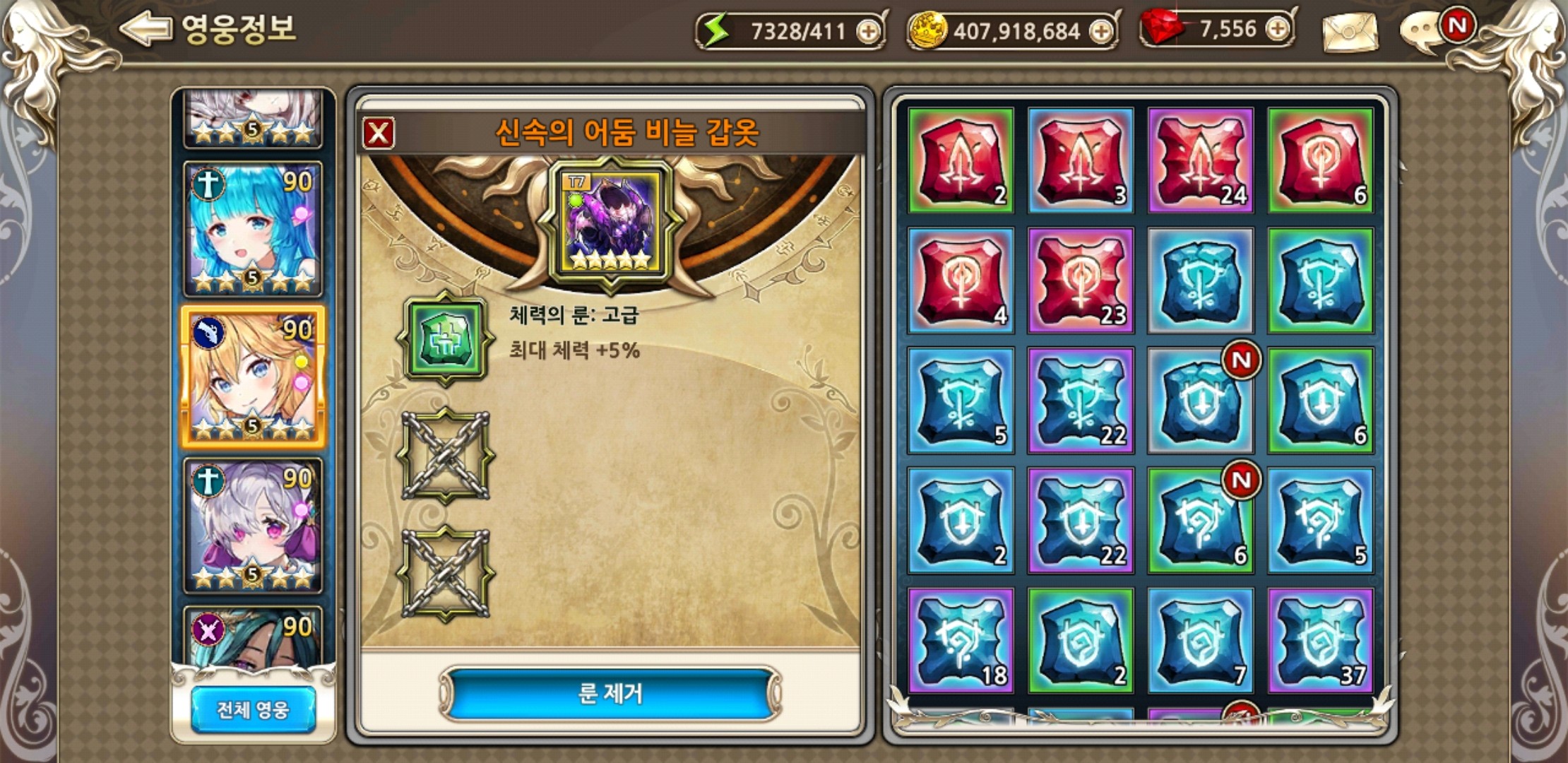 (하지만 갑옷의 추가옵션이 좋지않아 체력의룬은