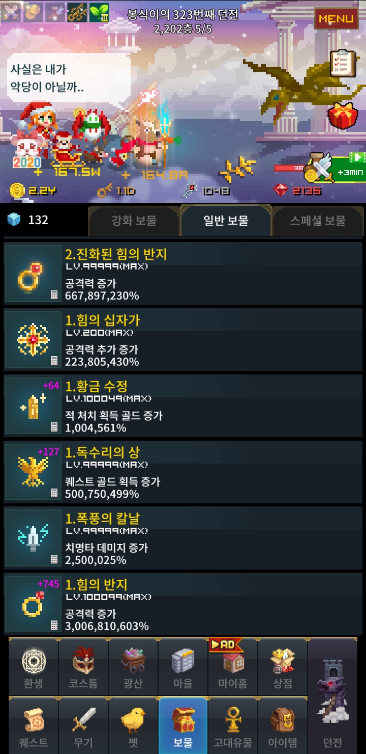 위의사진과 같이 보물을 렙업을 할 수 있습니다.