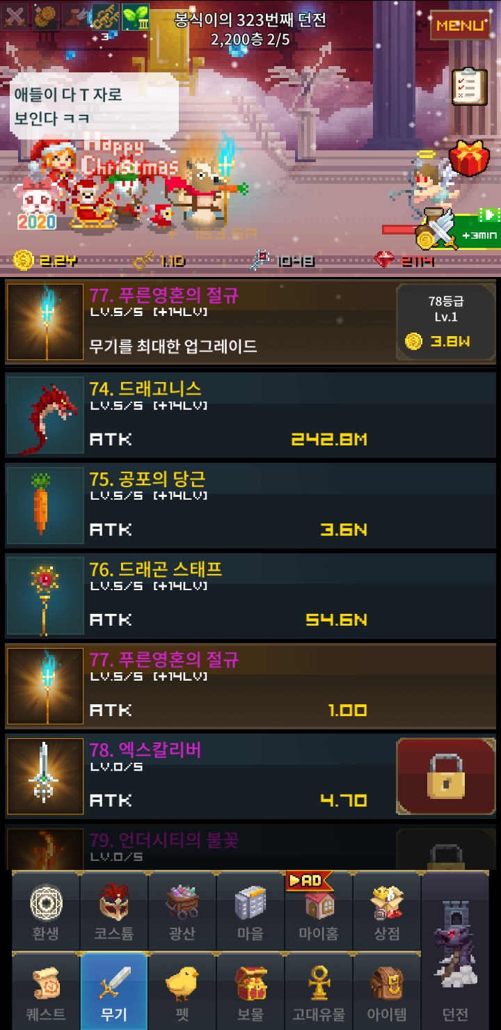 골드를 얻으면 무기를 강화를 할 수가 있습니다!!