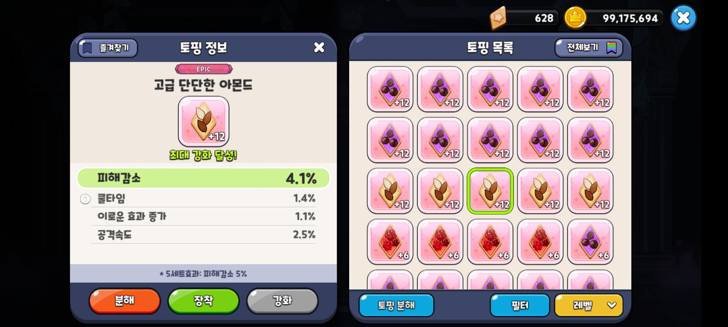 따라서 아레나에서는 아몬드2 & 라즈베리3 으로 세팅을 하는 게 좋을 것 같고, All 아몬드로도 사용을 할 수 있지만 이럴 경우는 부옵션에 공격력을 세팅을 하시면 좋을 것 같습니다!
