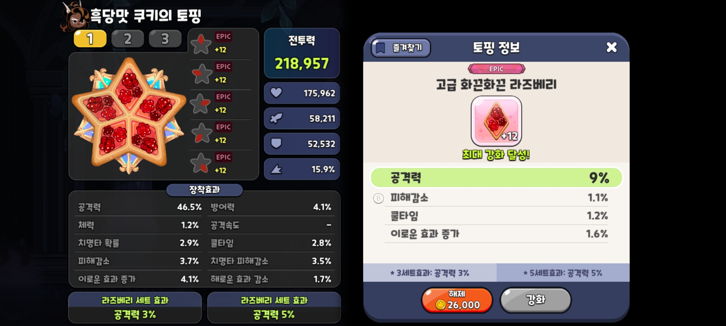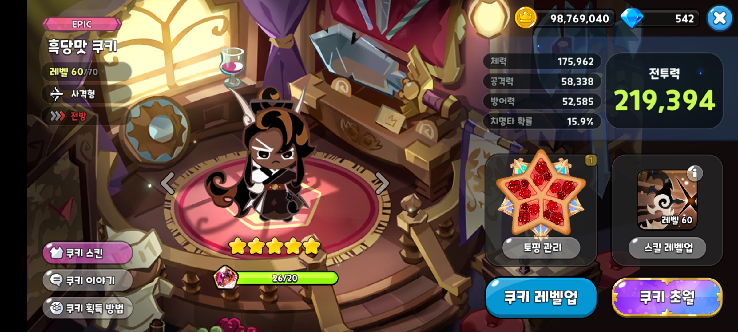 흑당맛 쿠키는 요즘 아레나, 월드탐험, 수호의성전에서도 자주 사용되고 높은 티어의 쿠키다보니 육성하는 것은 추천드립니다^^