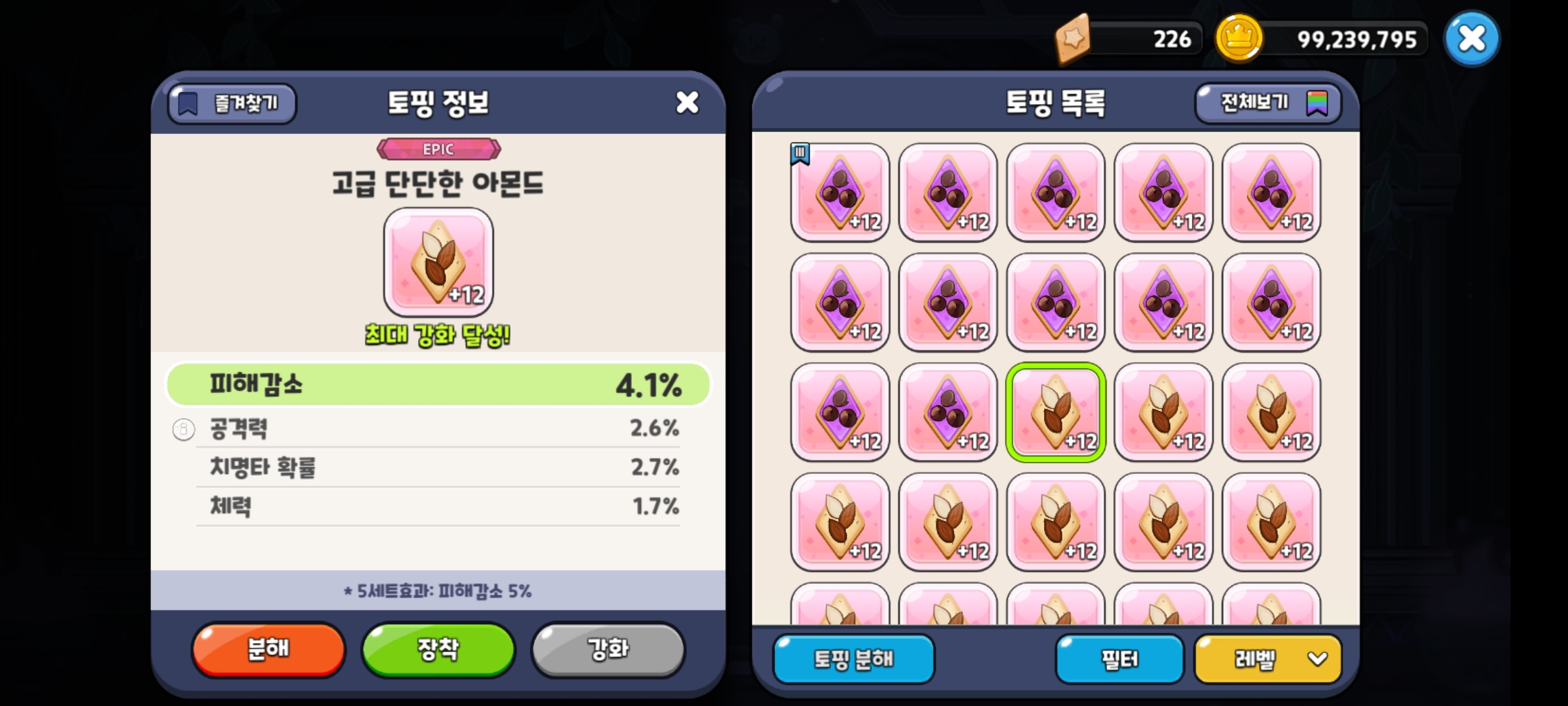아무래도 딜러다보니 공격력으로 세팅을 해주되 부옵션은 피해감소 위주로 맞춰주세요^^