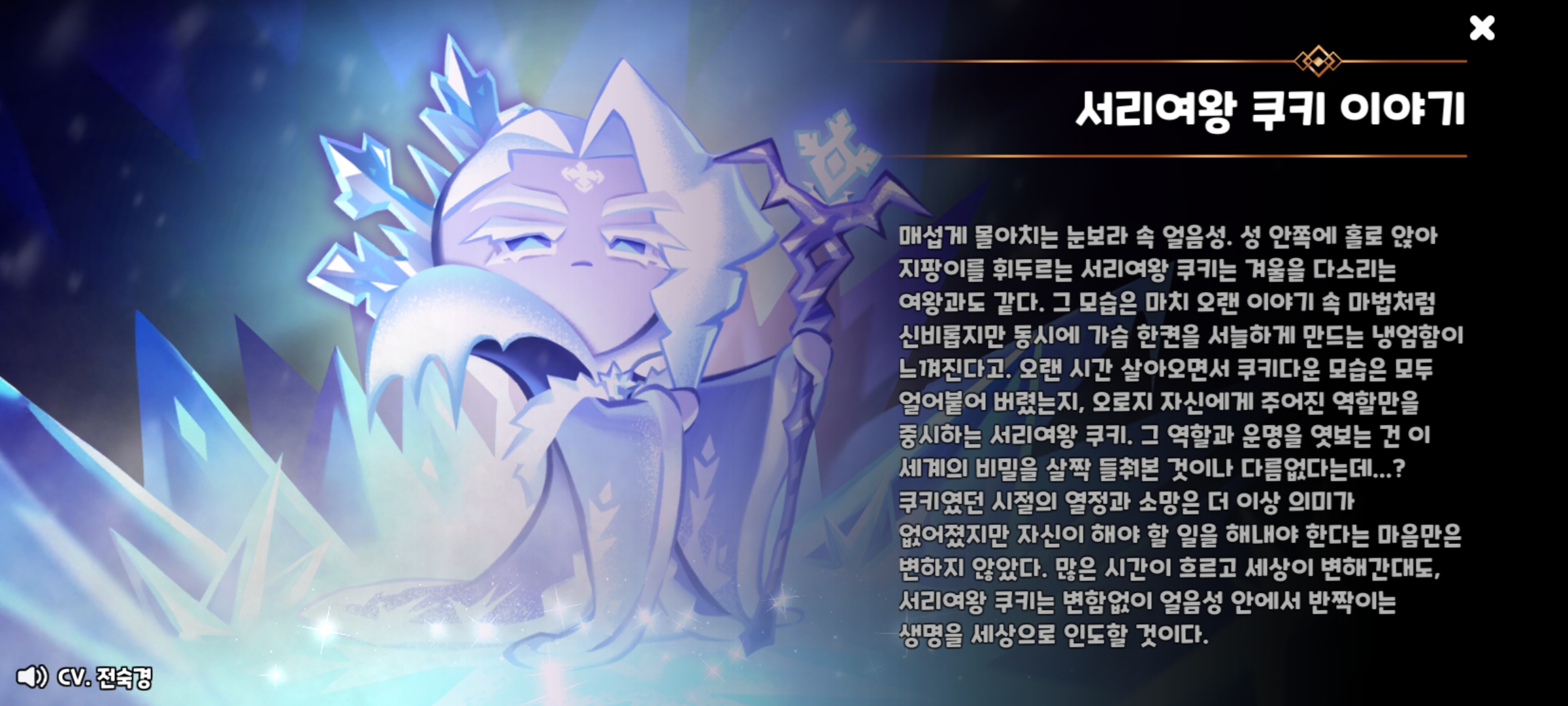 서리여왕 쿠키는 마법형 중앙 쿠키로 적들을 빙결시키는 특징을 가진 쿠키인데요~