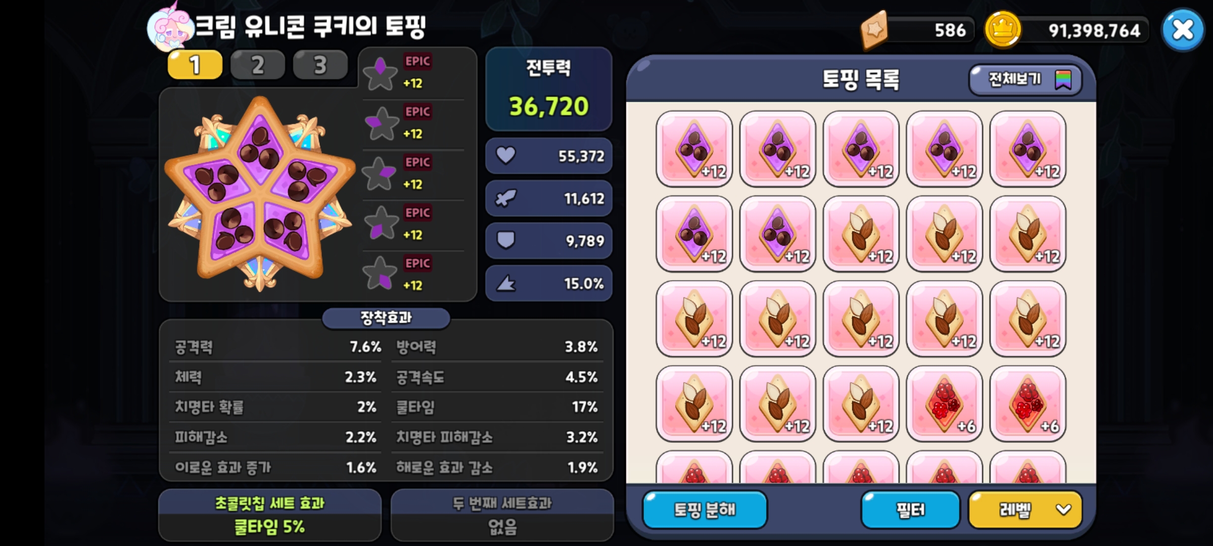 제 개인적인 생각으로는 월드탐험(스토리)과 수호의 성전에서 주로 사용될 토핑 세팅 같아요^^