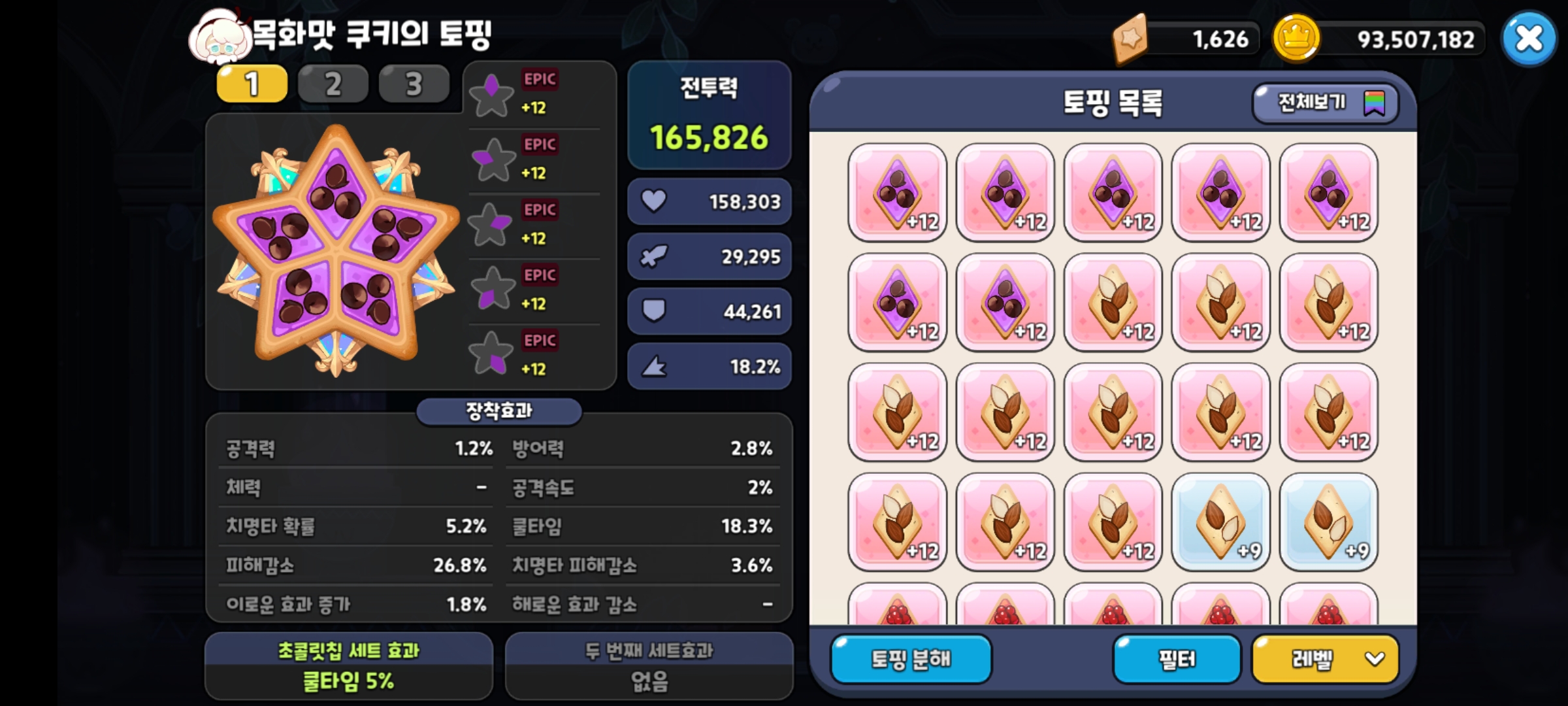 많은 분들이 쿨타임을 감소시키는 초콜릿칩을 사용하더라구요!