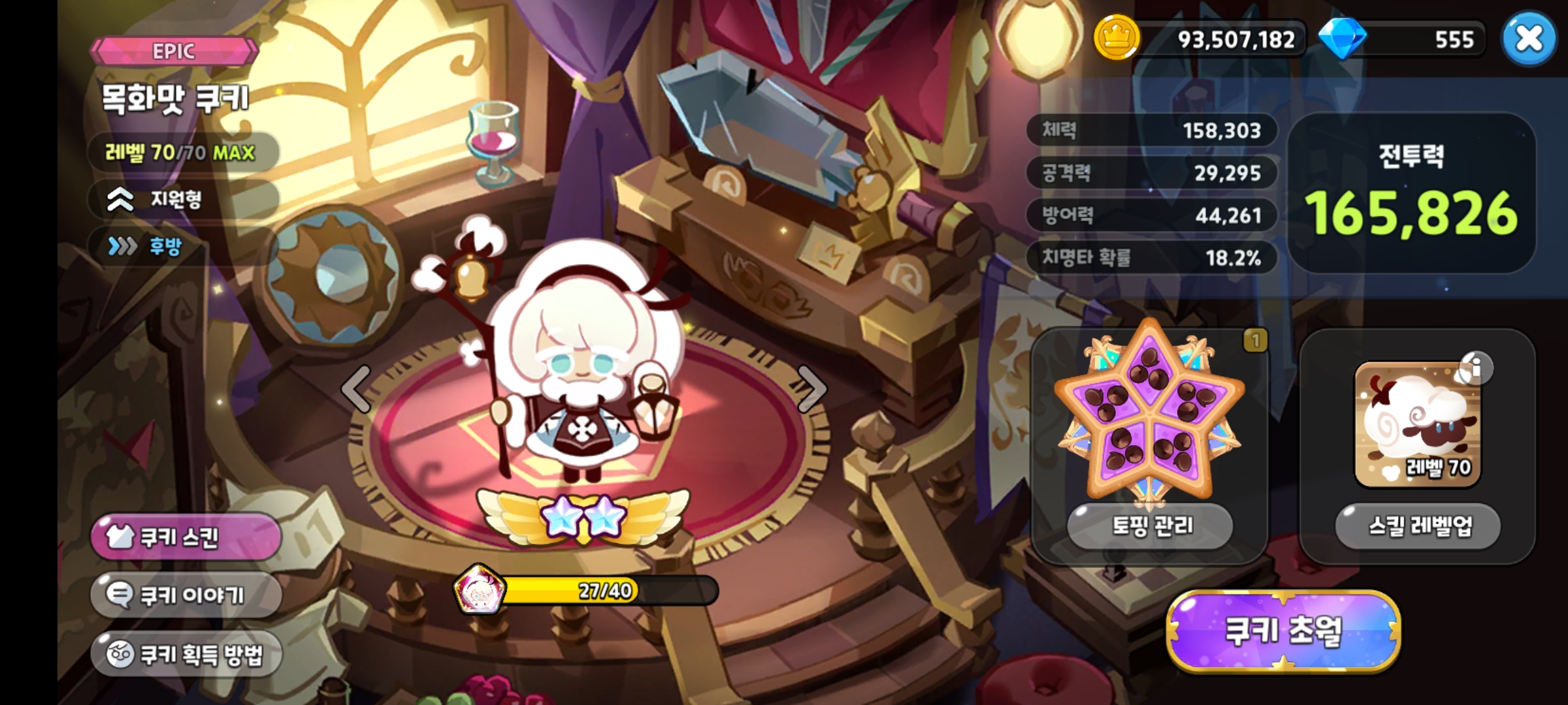 지원형 쿠키임에도 불구하고 체력회복과 높은 공격으로 정말 자주 쓰이니 무조건 육성을 하는 것을 권해드립니다!!