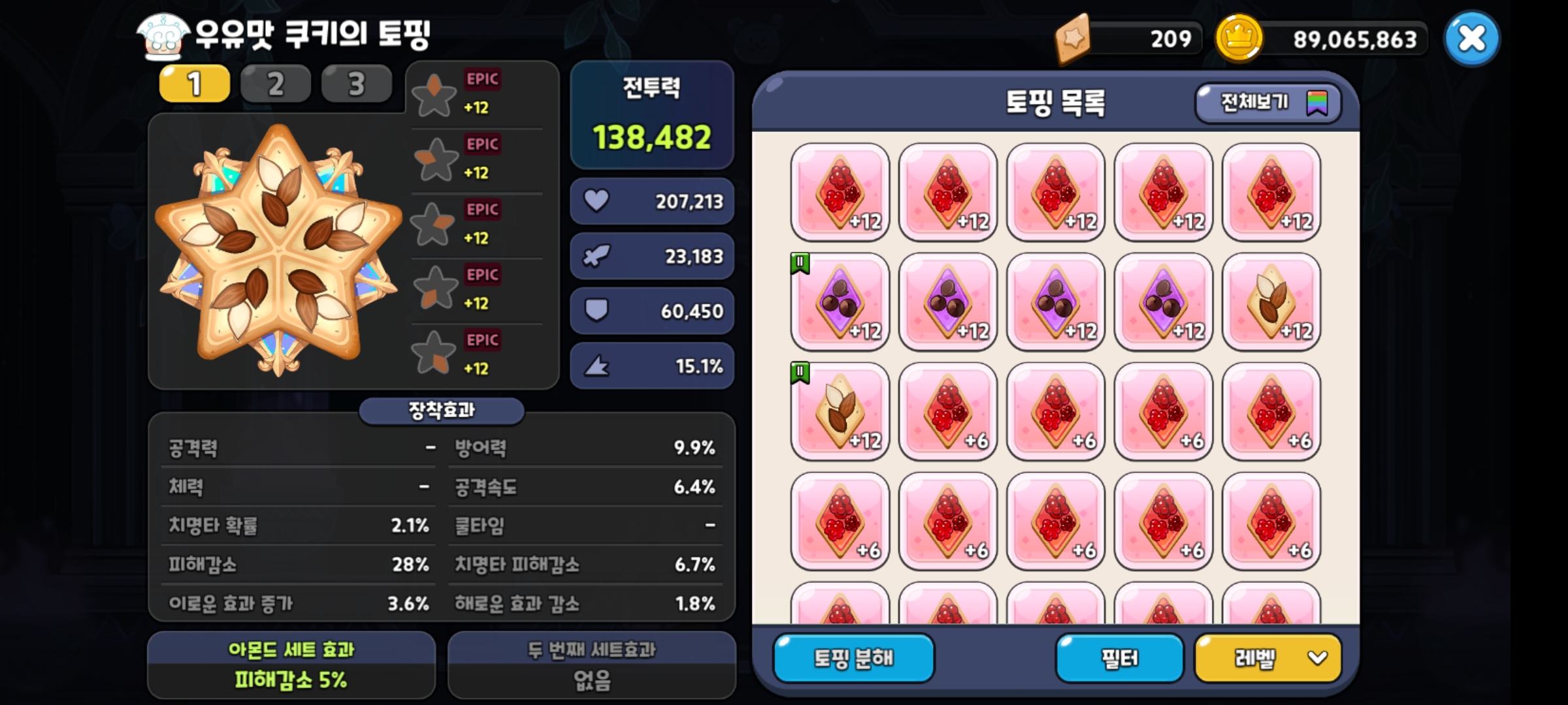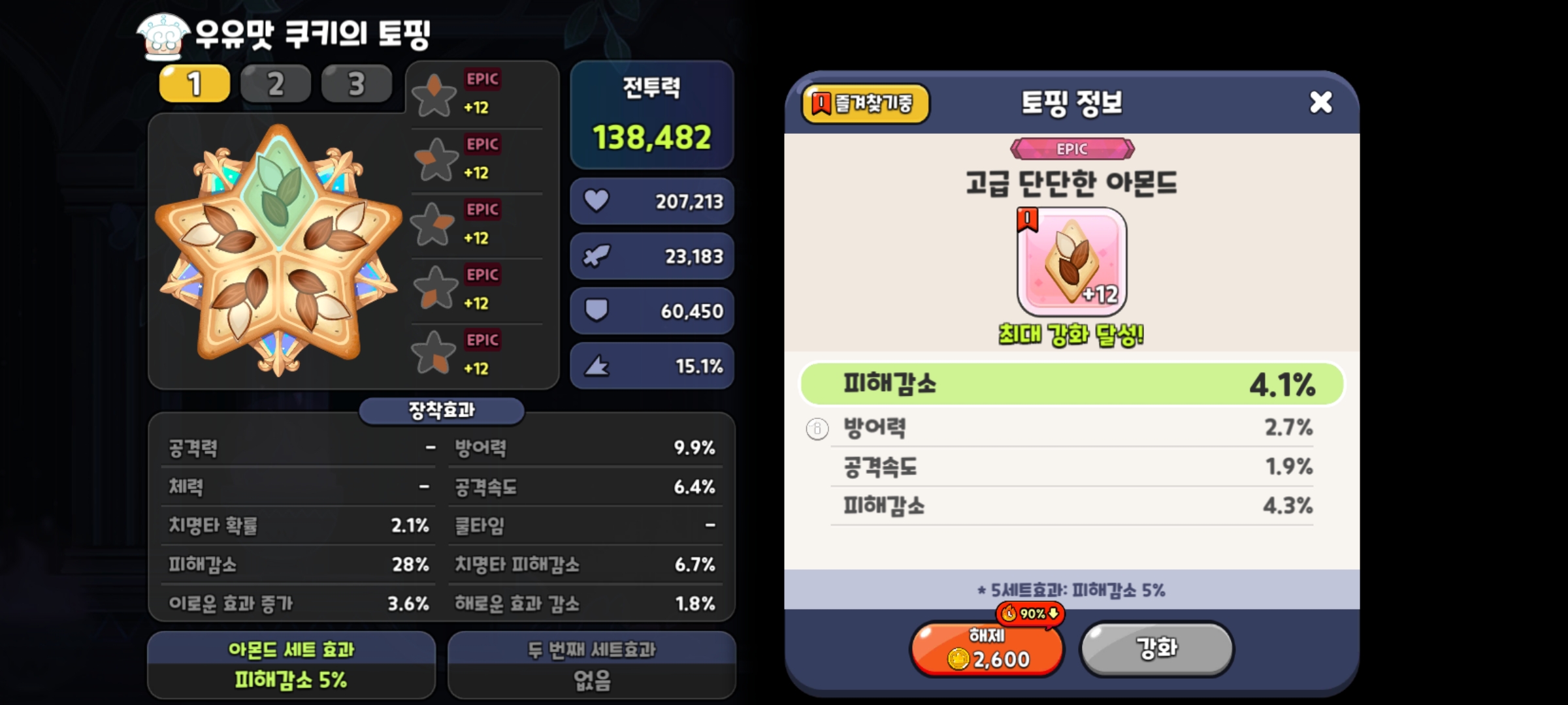 그래서 토핑은!? 딱 탱커니 아몬드로 맞춰주시고, 부옵션은 피해감소로 전부 맞추어 주면 됩니다!!^^