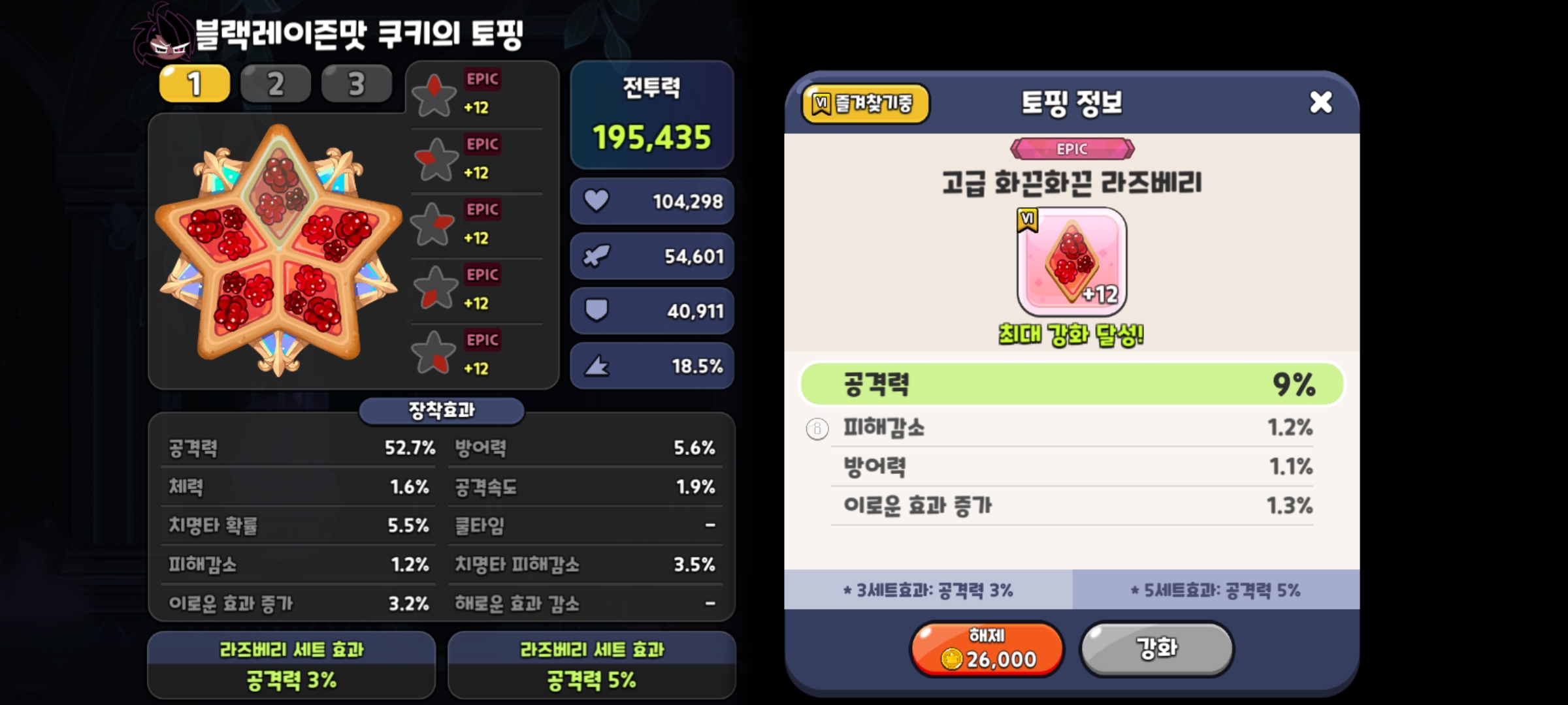 본론으로 넘어가서 블랙레이즌맛 쿠키 토핑으로는 아무래도 딜러다보니 All 라즈베리에 부옵션은 피해감소로 맞추어 주시면 되는데요!?