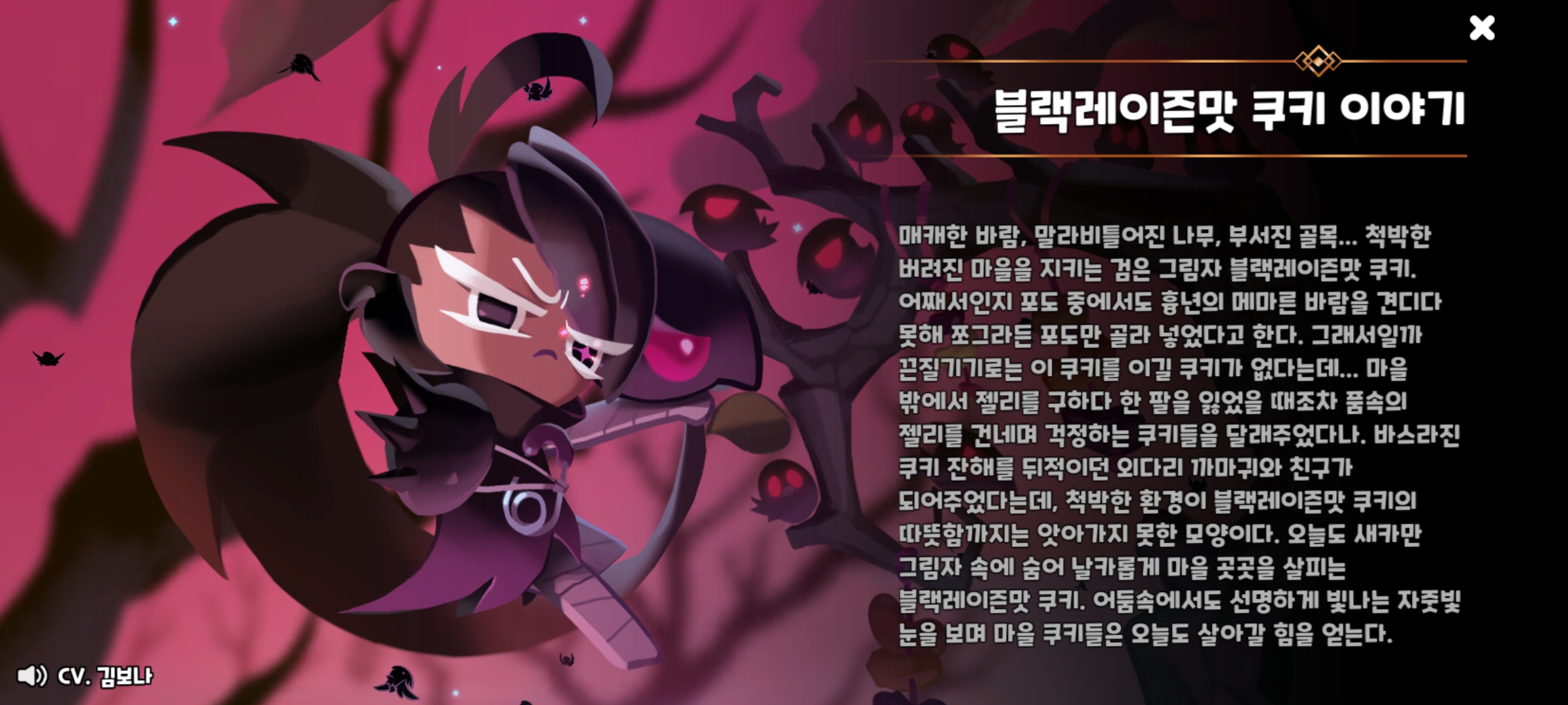 블랙레이즌맛 쿠키는 침투형 중앙 쿠키로 공격할때 잠시 무적 상태가 되고(타겟으로 잡히지 않음) 적들에게 광범위 피해를 주는 특징을 가진 쿠키인데요?!