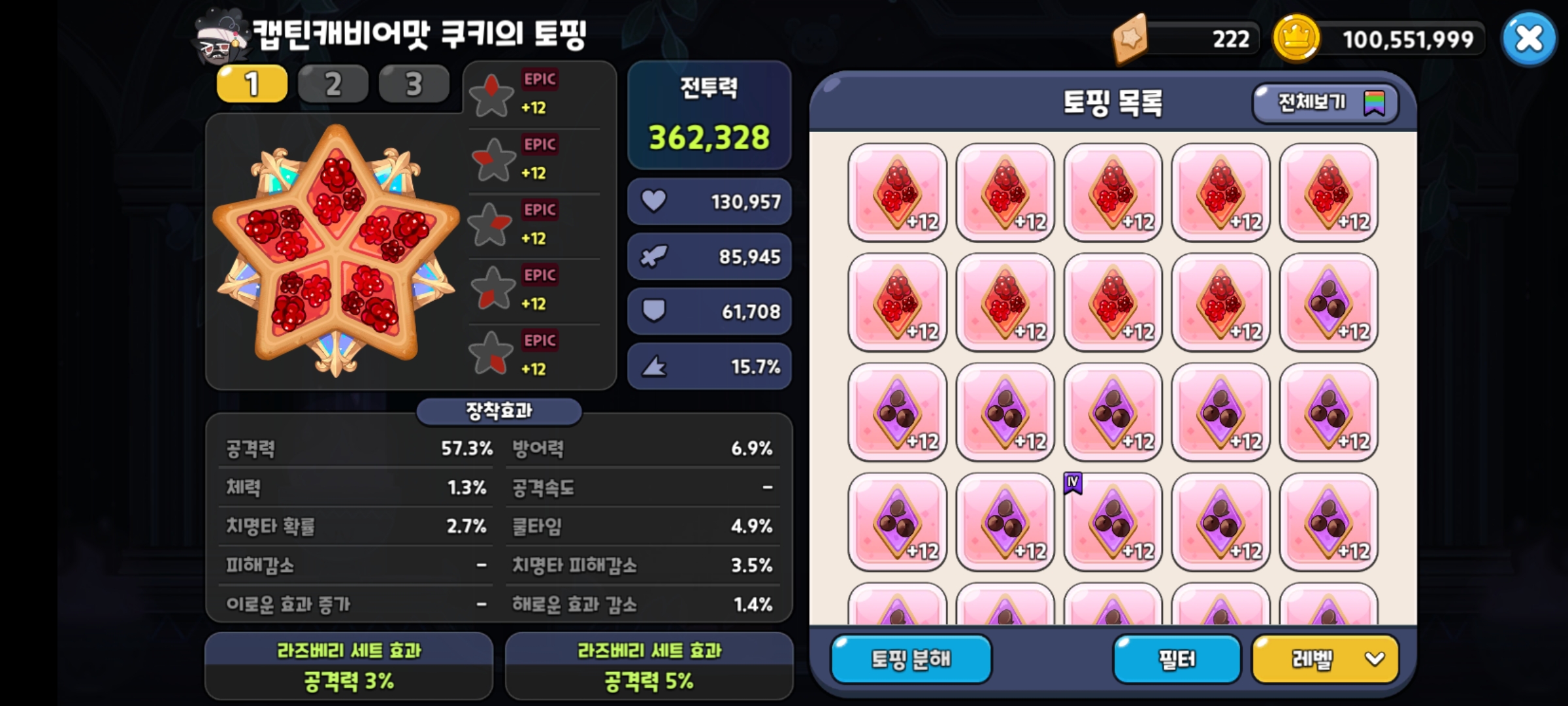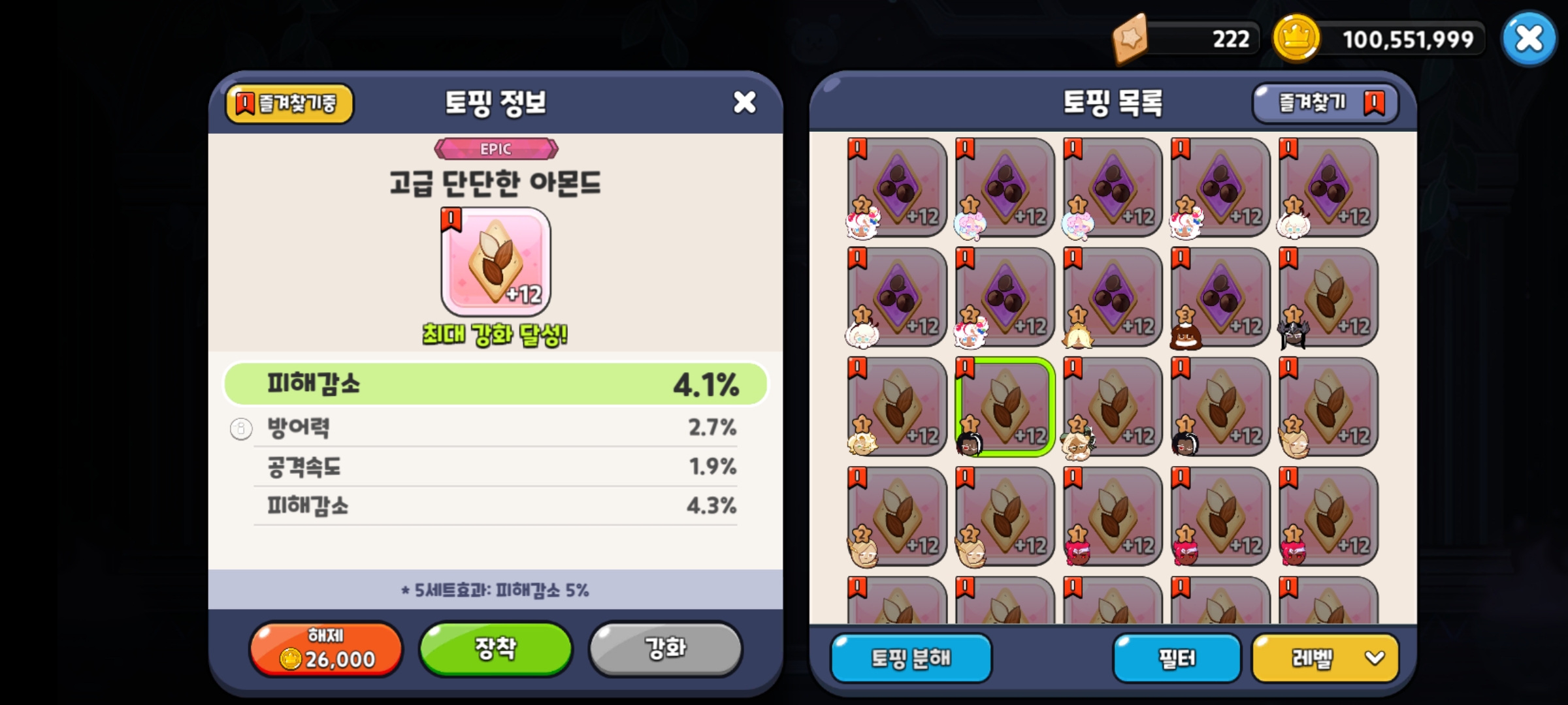 하지만 무과금 유저는 부옵션을 피해감소로 맞추기 어렵다보니 너무 잘죽는다 싶으면 라즈베리3 & 아몬드2로 맞추는 것도 추천드립니다ㅎㅎ