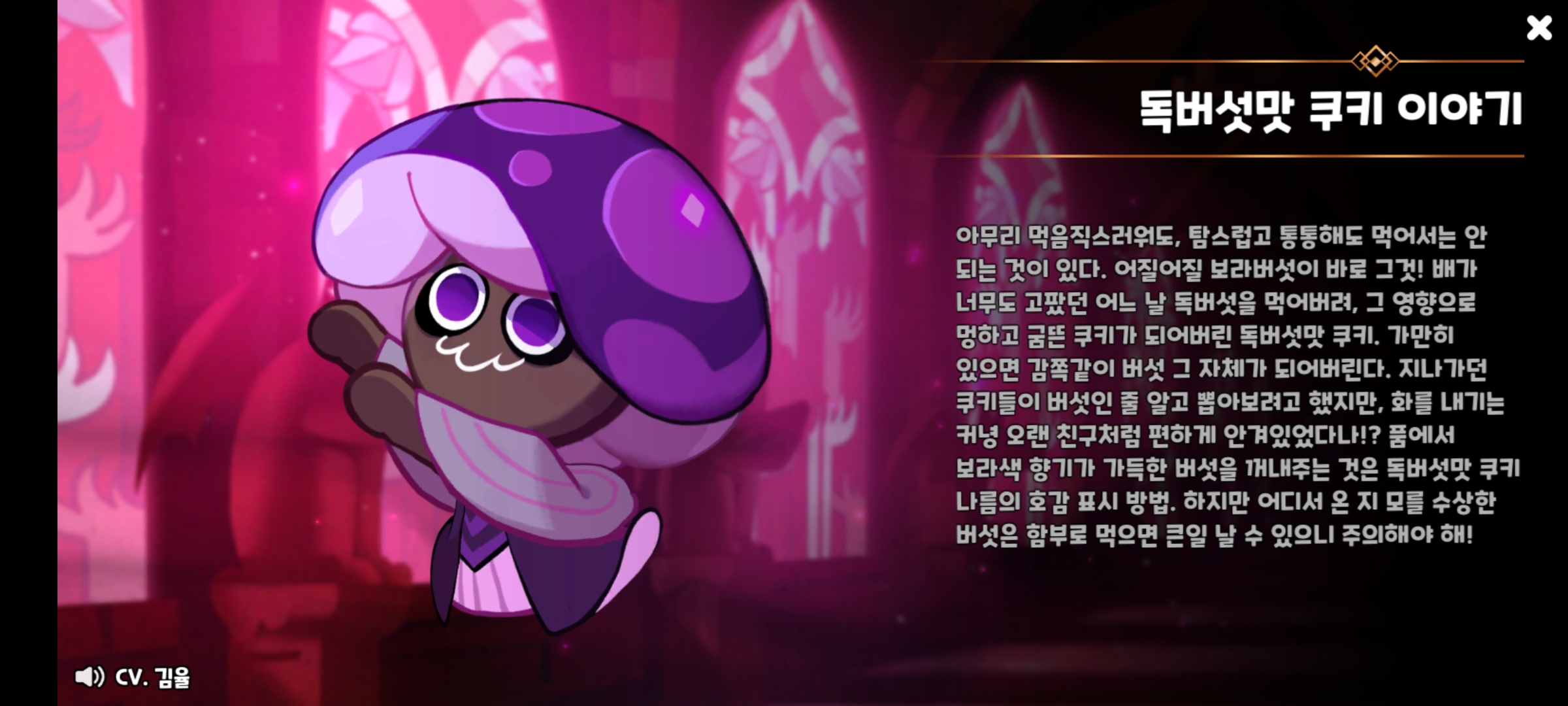 독버섯맛 쿠키는 폭발형 중앙 쿠키로 일반 공격을 할 시 범위 공격을 하고, 스킬 사용을 할 때에는 중독으로 지속 피해를 주는 특징을 가진 쿠키인데요??
